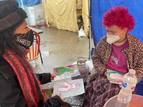 A key part of Portland’s identity is its supportive arts community. GMS actively works to inspire, promote, and support artists experiencing houselessness and poverty in developing their creative practice by mentoring people on their own terms. When our creatives express an interest in pursuing their art or we see an opportunity to connect like-minded artists, we create space to foster collaboration and reciprocal inspiration.