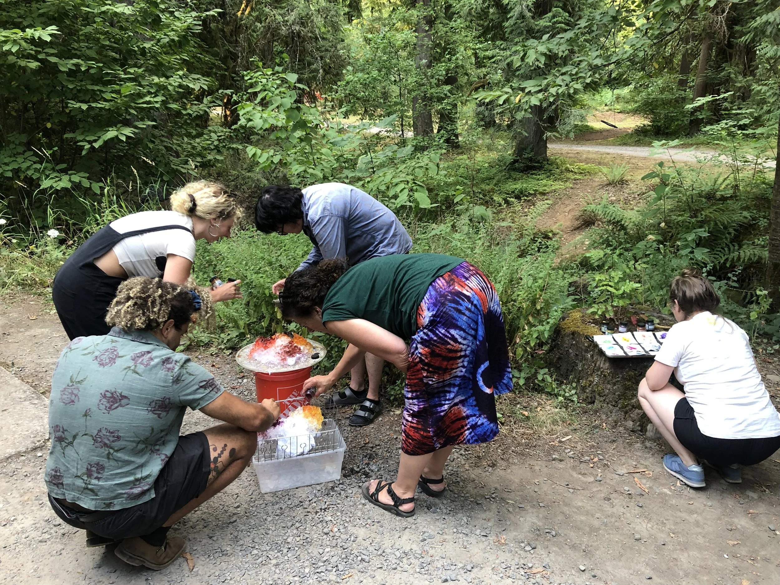 Programs Coordinator and Workshop Instructor Monica led us through a dye process using ice and powder dyes! We loved the process and enjoyed seeing how the mysterious colors turned out the next day.