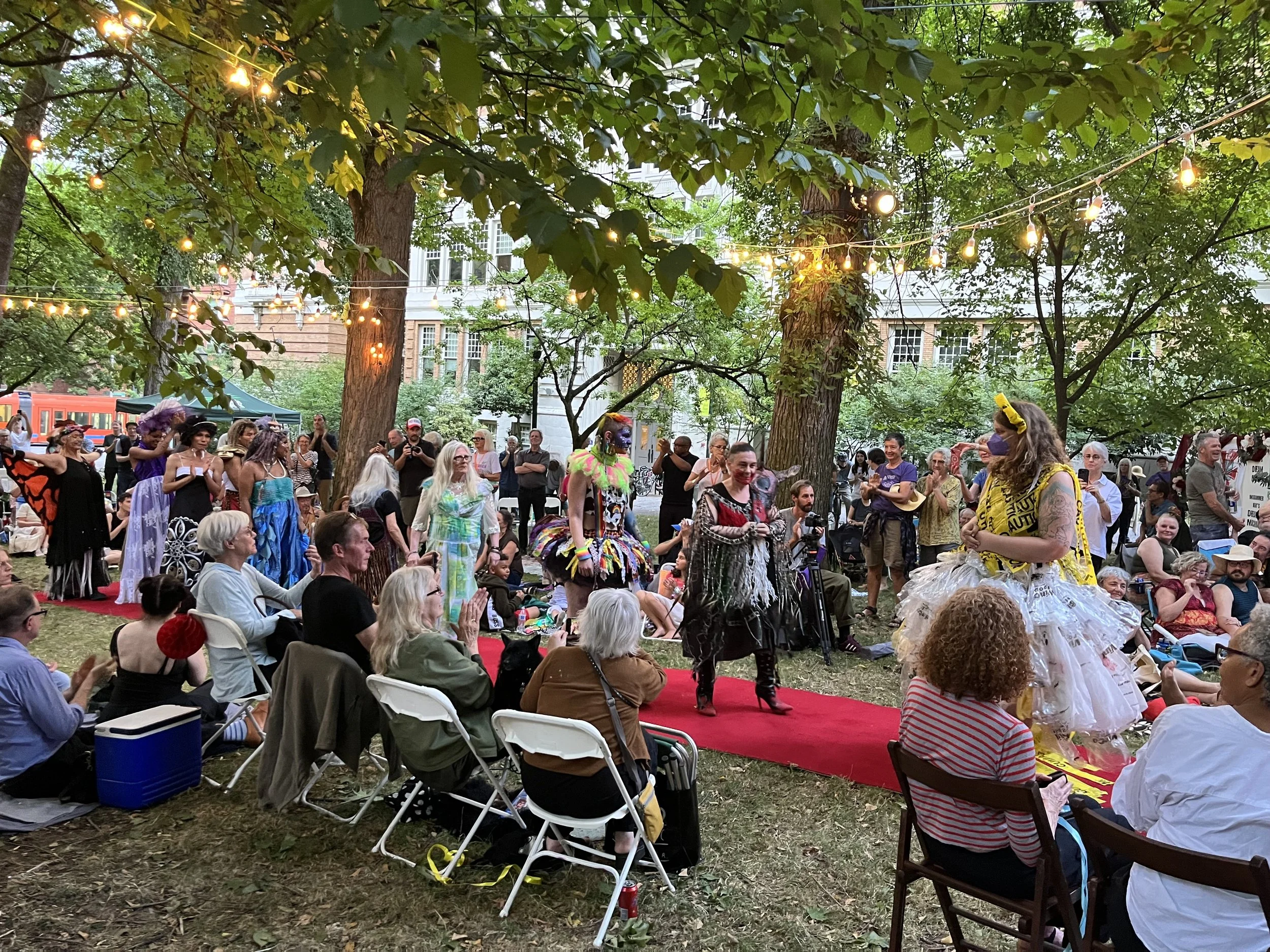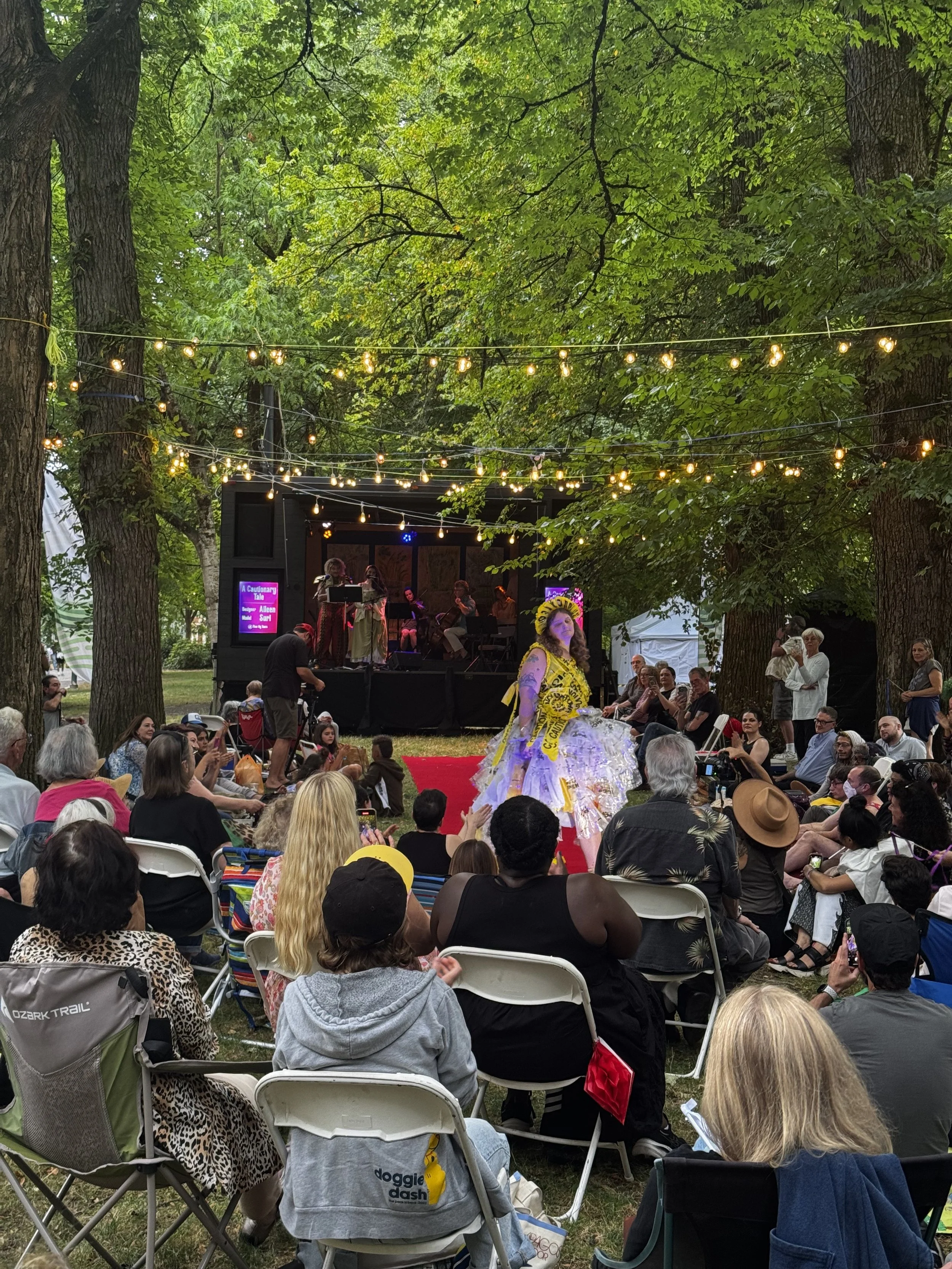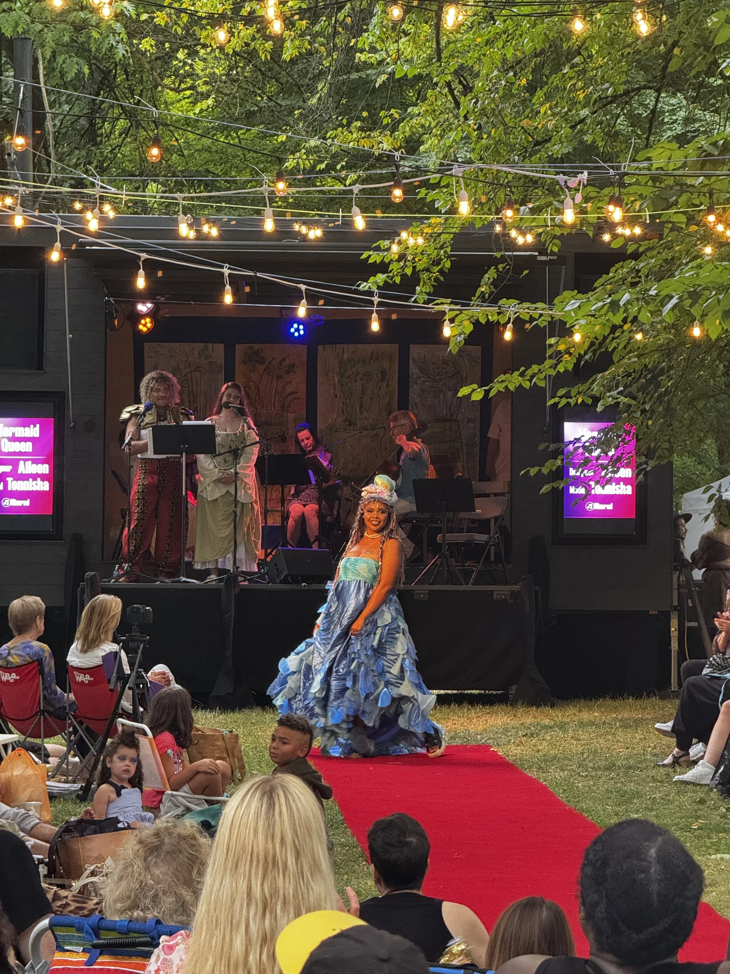 With the help of our amazing volunteers and staff, preparing our whimsical setting was smooth all day long. Fairy lights hung from the trees, a red carpet graced the lawn, and the incredible solar-powered mobile stage was set up by SoundsTruck NW. We were lucky enough to hear some classical music while our artists had their hair and make up done by the talented Katie and Merrin.