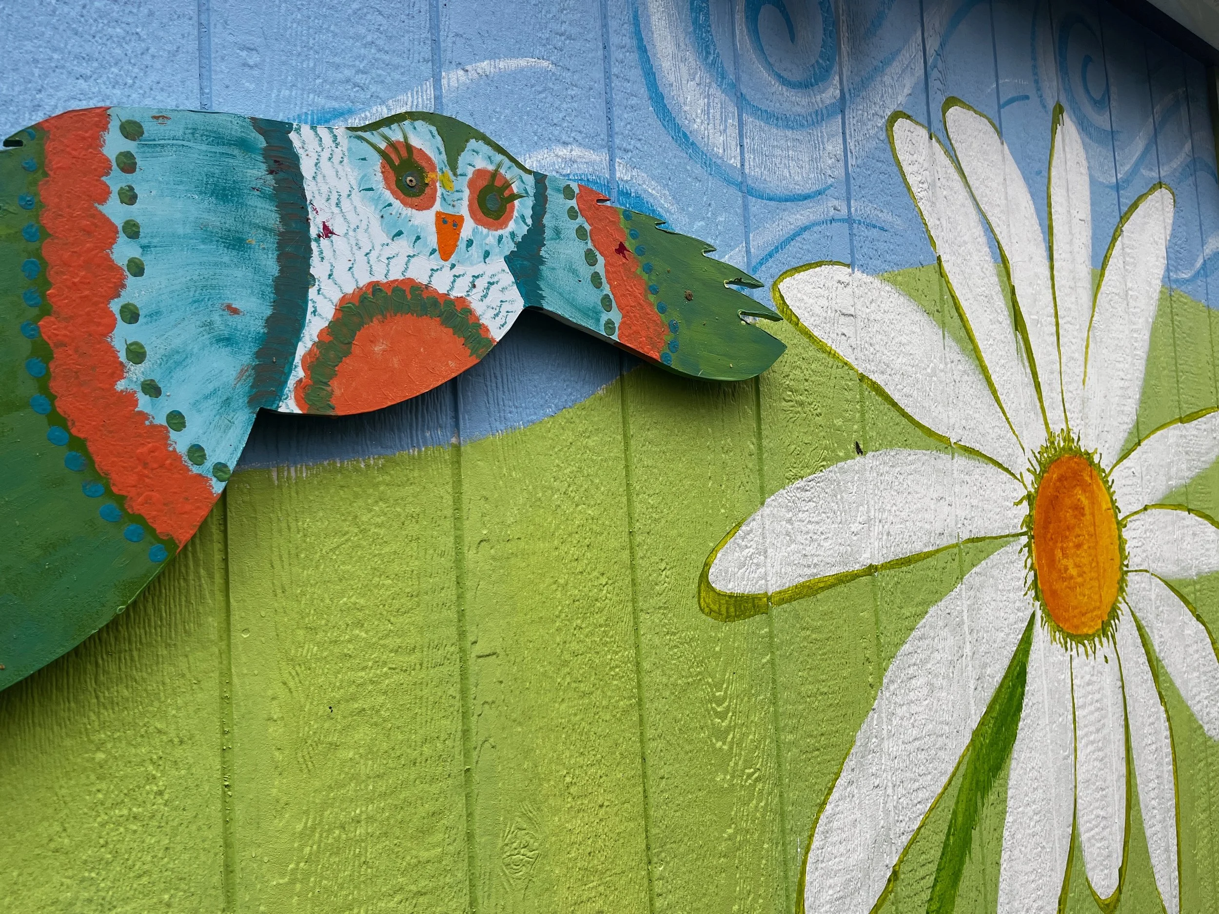Portland, OR 97209Luminous shares the history of the collaborative relationship between Gather:Make:Shelter and WeShine micro-villages. Featured artwork includes paintings and drawings from current and past WeShine villagers, workshop projects, and an extensive installation of hand-painted bird cutouts. Luminous is a celebration of the light that WeShine and GMS bring to the world through safe spaces, murals, gardens, art workshops, and a shared creative community.