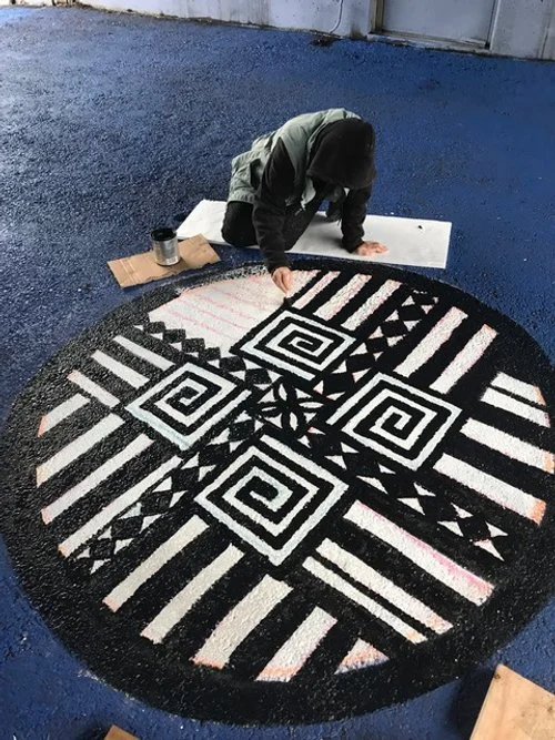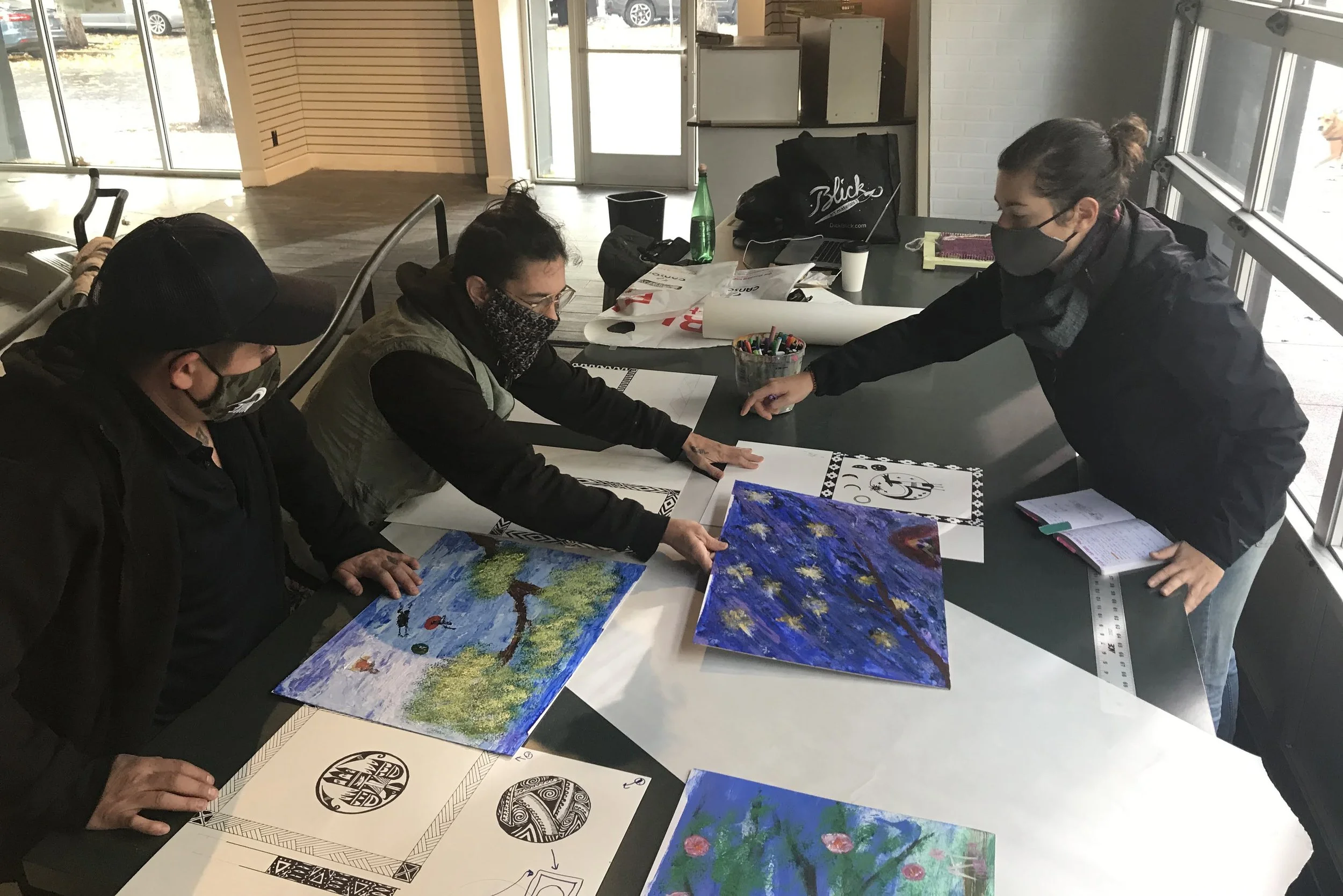GMS artists Aileen and Michael worked together to create murals combining Aileen’s colorful nature-inspired drawings and patterns representing Michael’s native heritage.