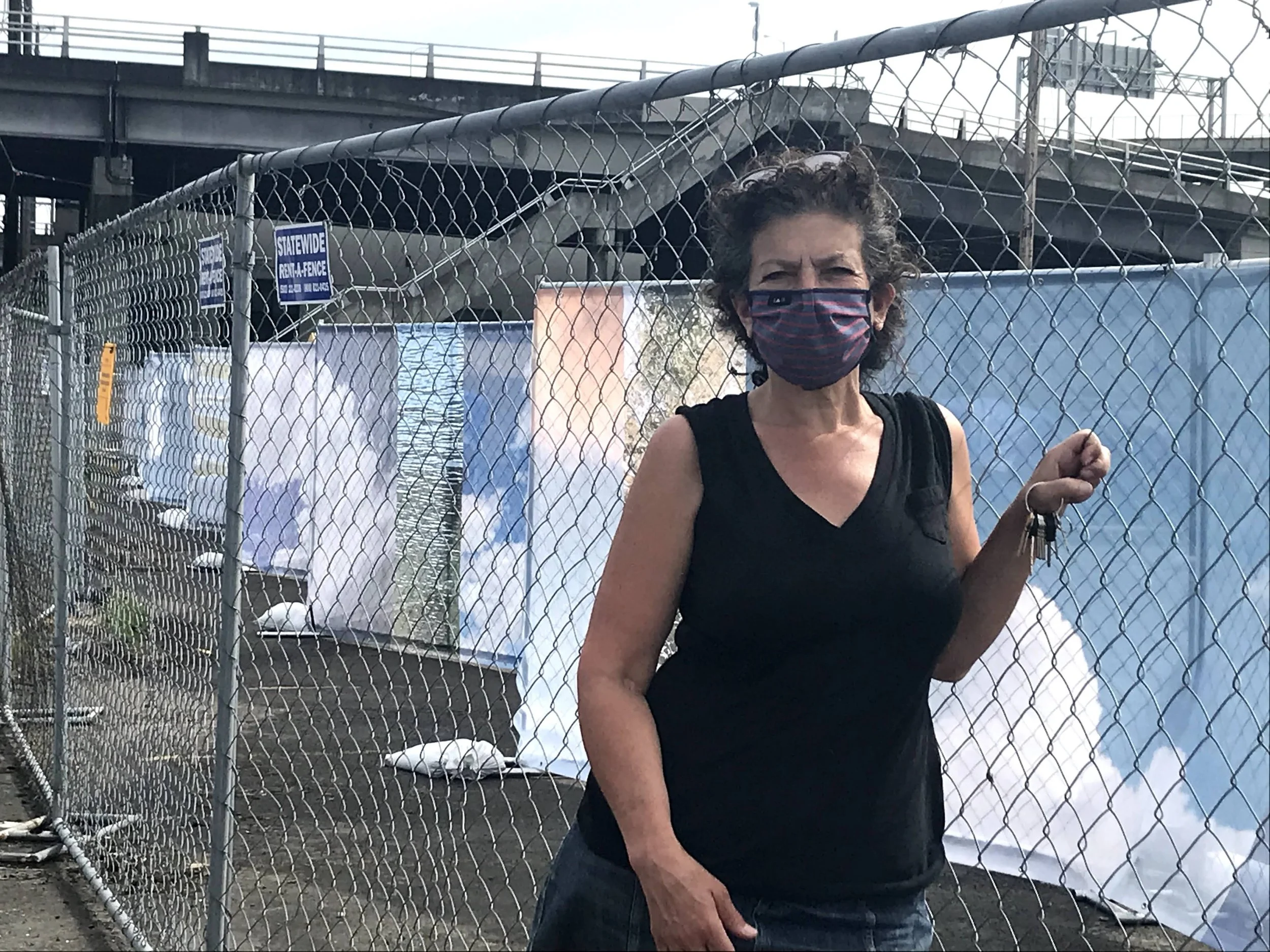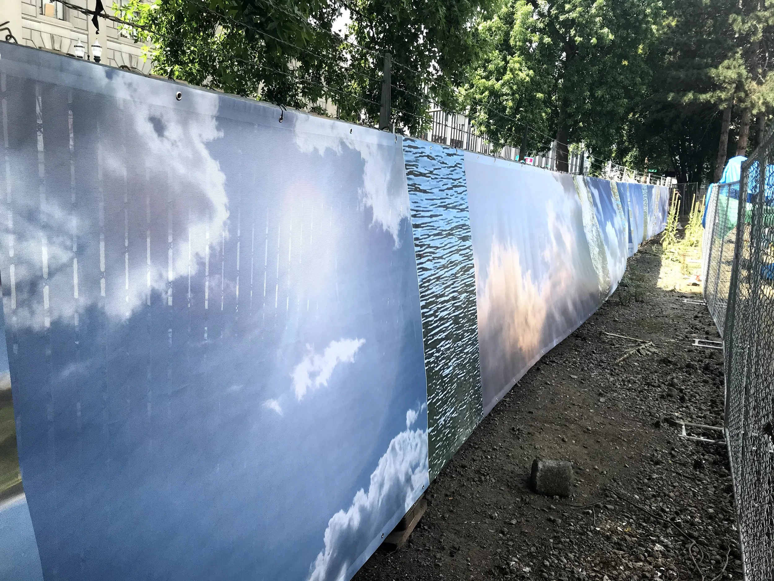 The collaged photographic imagery with scenes of soothing water and cloudscapes performs a service of beautifying and uplifting the space both inside and outside the village, while retaining villagers’ rights to their own private space. In designing the privacy screen, Dana considered how the challenge of houselessness is not an isolated one, and people experiencing houselessness and poverty should not be categorized as a community separate from those who are housed.